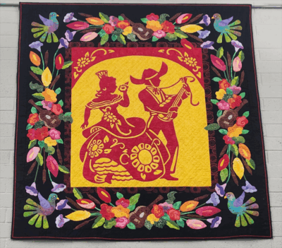 The dancers on the interior of the quilt were done with reverse appliqué. The border is a wonderful